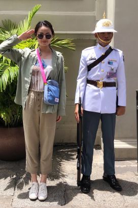 这段将近五个月的交换生经历更多让我看到的是世界眼中的中国,对祖国的崇敬与热爱也愈加深切。在旅行期间得到同意与泰国站岗士兵合影时,脑子里闪现的全部都是中国军人的形象,所以第一反应是骄傲地做了一个中国军人敬礼的手势。哪怕时隔已久,现在再次回忆这些经历时,内心依旧心潮澎湃迟迟不能平静。